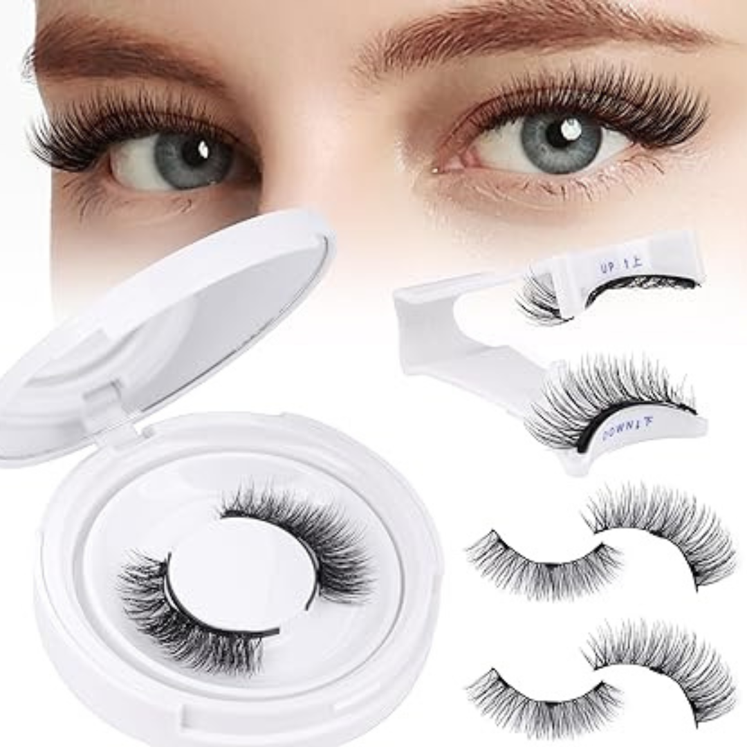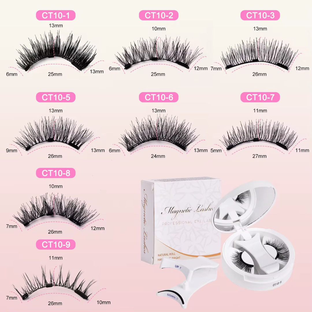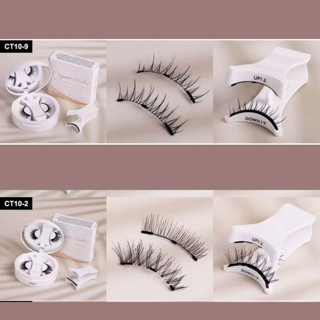 Coloca una tira en UP (arriba), otra en DOWN (abajo), pon tu pestaña natural en medio, presiona… y el imán las fija al instante ✨